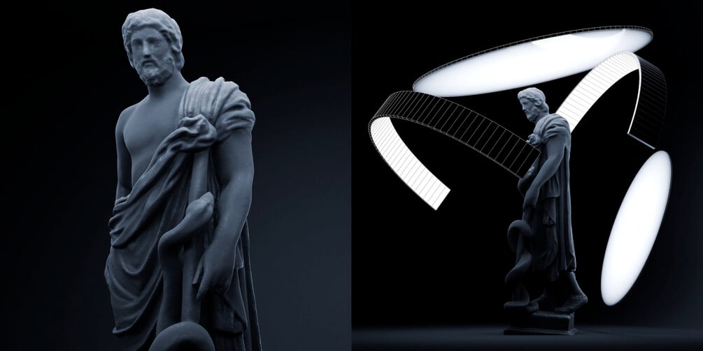 ( Asklepios scan from the Virtual Museums of Małopolska (not included). Using included ‘Fossil’ material in the ‘Studio Cage 9’ preset from Afterglow V1. )